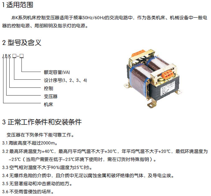 JBK4系列单相机床控制变压器