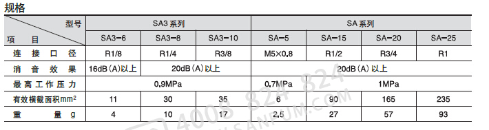 适用于降低气动设备的排气音;本体采用树脂,轻量、价格低廉.