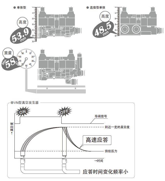 VN型真空发生器 反应高速稳定的真空系统 VN型真空发生器和符合真空泵装置的VNP型
