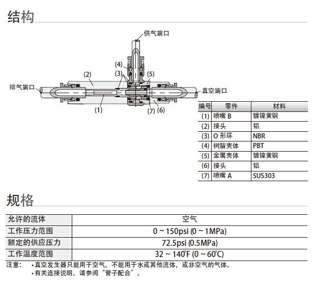 该类型的真空发生器传送体积小的不规则材料,如气流中的颗粒、粉末和纤维等.