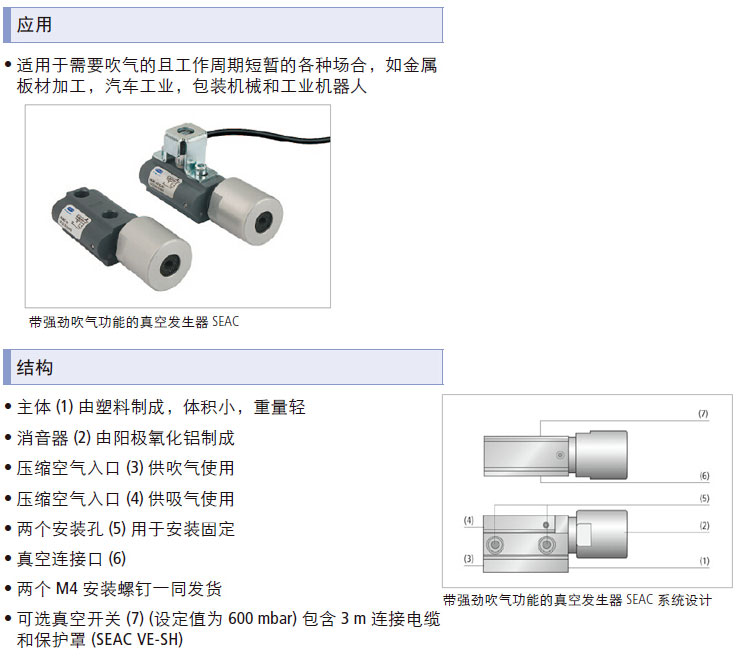 SEAC系列带强劲吹气功能的真空发生器