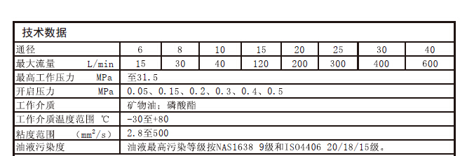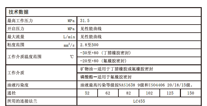 通径(NG)52至150;压力至31.5MPa;流量至15000L/min。