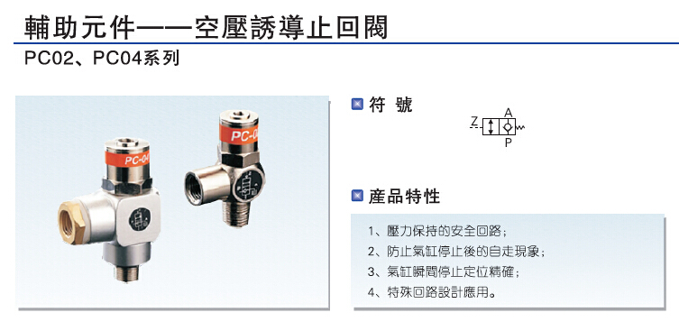 压力保持的安全回路;防止气缸停止后的自走现象;气缸瞬间停止定位精确;特殊回路设计应用。