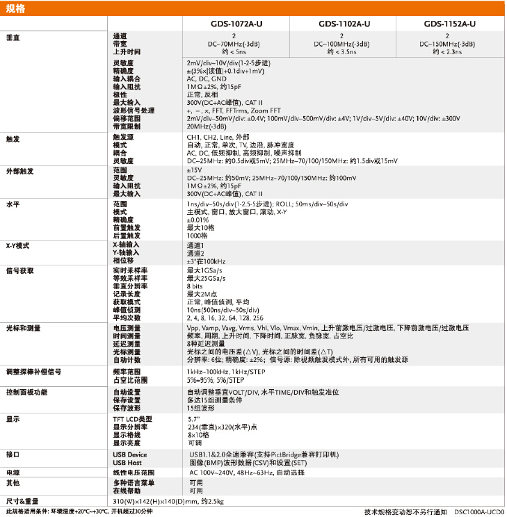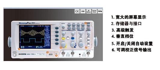 1GSa/s实时采样率、2M记录长度、USB远程接口、高分辨率彩色TFT屏幕以及GW友善的人机操作界面,是一台高品质、 强有力的波形捕获和分析工具。