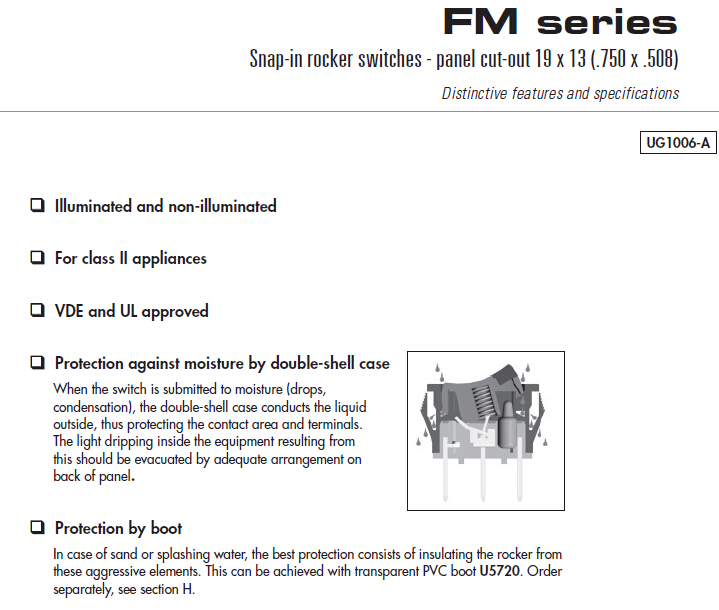 双重绝缘,PA6/6外壳,框架,开关; 带灯或不带灯; 环氧树脂密封终端;