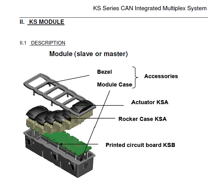 多种颜色选择,激光蚀刻标志,带灯或不带灯; 完全分离的电子和机械部件; 可以集成的多路复用系统,CAN总线,增加可靠性,灵活和可扩展的系统,降低了布线成本.