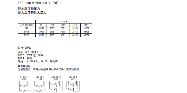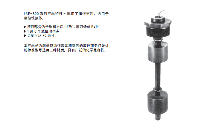 耐腐蚀,全塑料材质,1-6个液位动作点,长度可到70英寸。