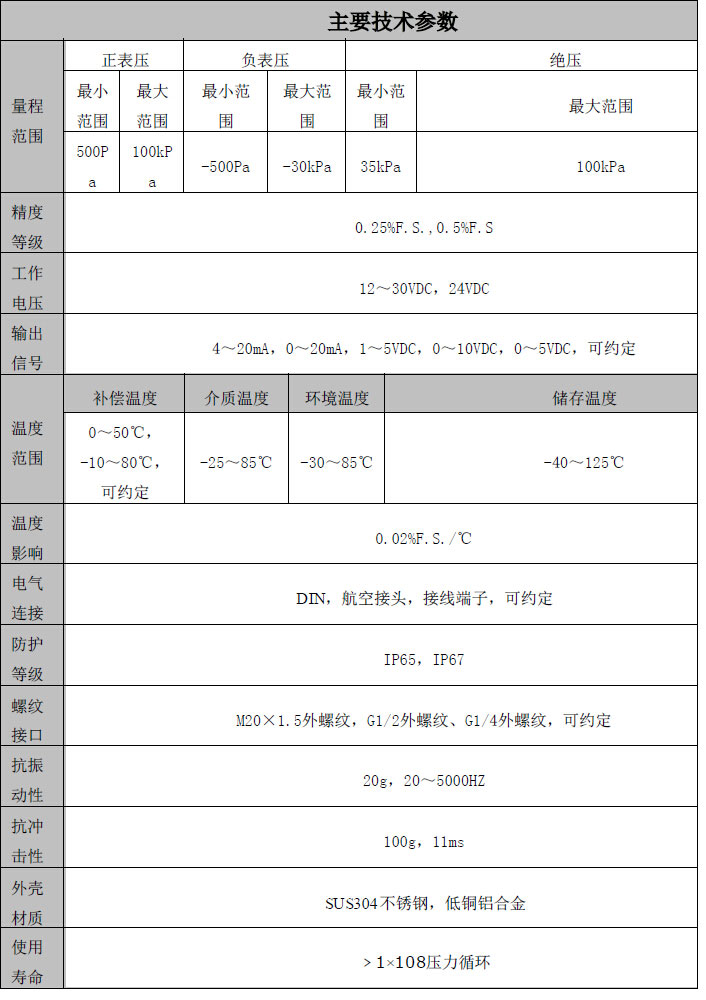 非隔离硅压阻传感器; 测量干燥无腐蚀的气体; 超强抗干扰能力; 小量程性能出众.