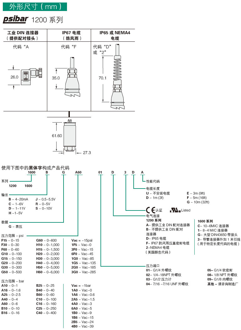 表压、真空和复合压力型; 通用型和冲洗型外壳; 薄膜较厚,结构上使耐压性能提高; 电压输出型和电流输出型.
