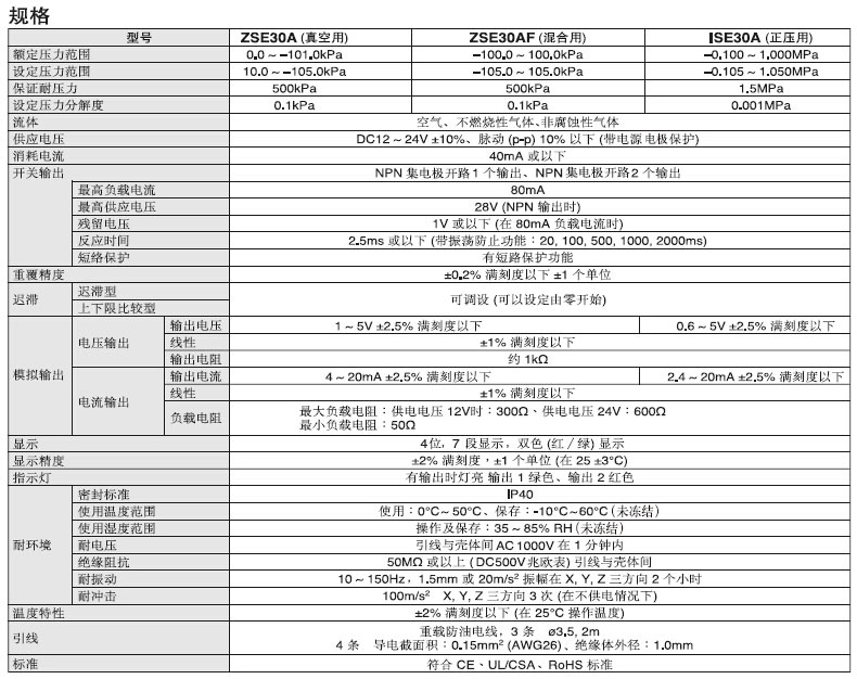 数字用2色显示; 安装更省空间; 简易使用; 压力表的设置可同时复制10个压力开关.