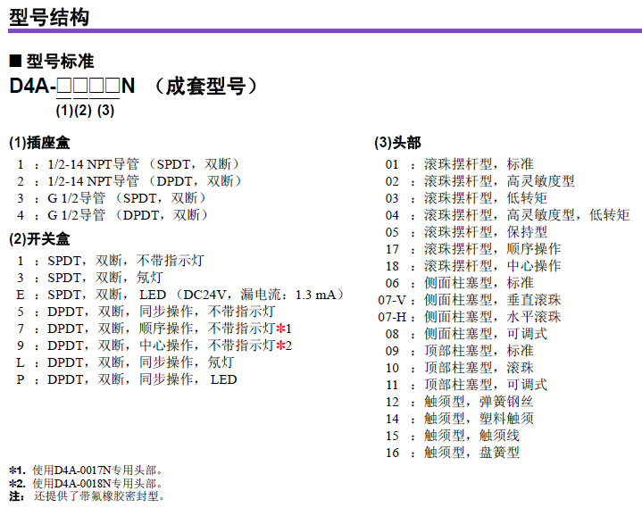 D4A-N系列一般用限位开关