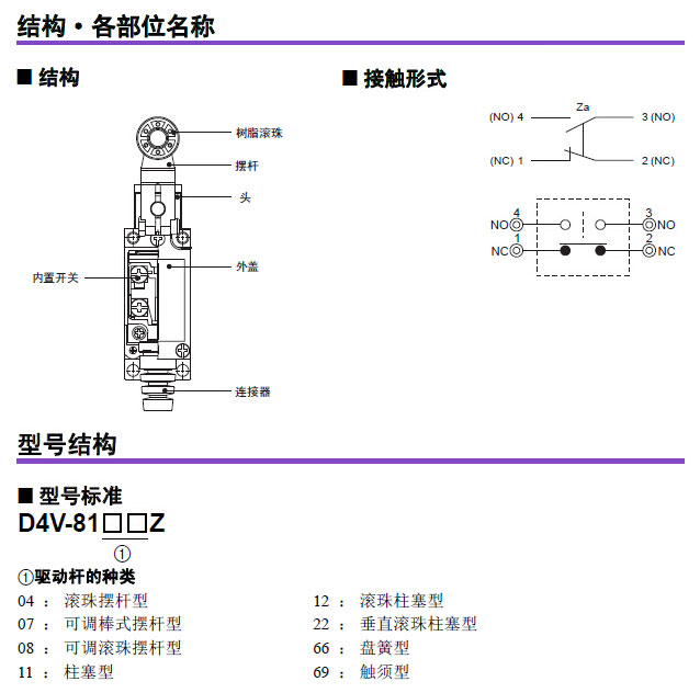 小型纵型亚洲标准尺寸; 纵型限位开关的1/3的小型化设计; 端子部全开放构造,便于布线; RoHS对应; 保护构造丨P65.