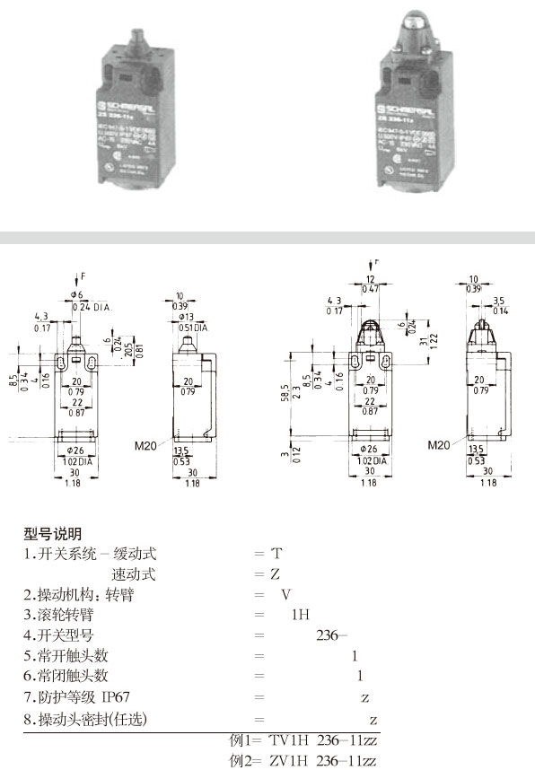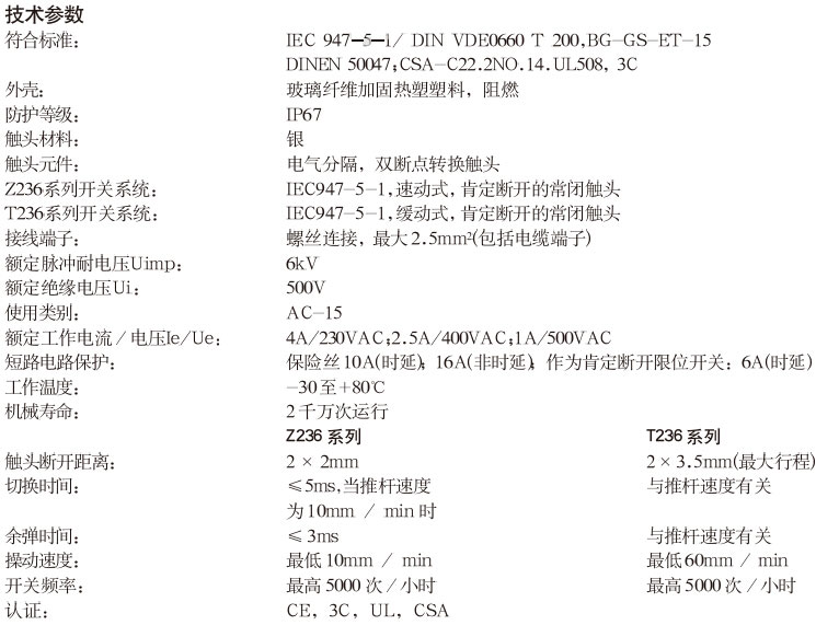 塑料外壳; 防护等级IP67; 二触头; 速动式和缓动式.