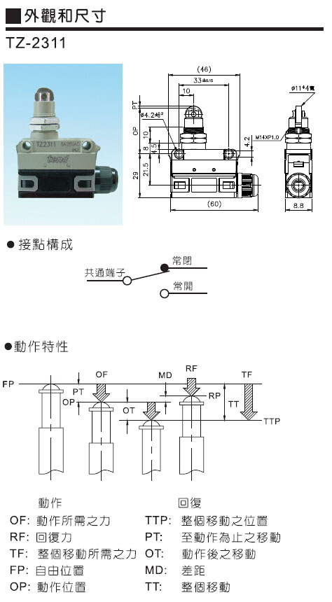109302/TZ-2311/TZ-2系列小型限动开关