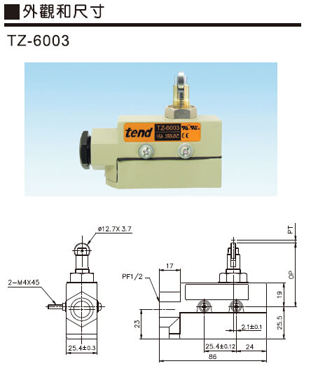 引动器种类多,方便使用; 每一只开关均附电缆固定器(含橡胶圈、金属垫圈、塑胶螺母); 保护机构:IEC规格IP65.