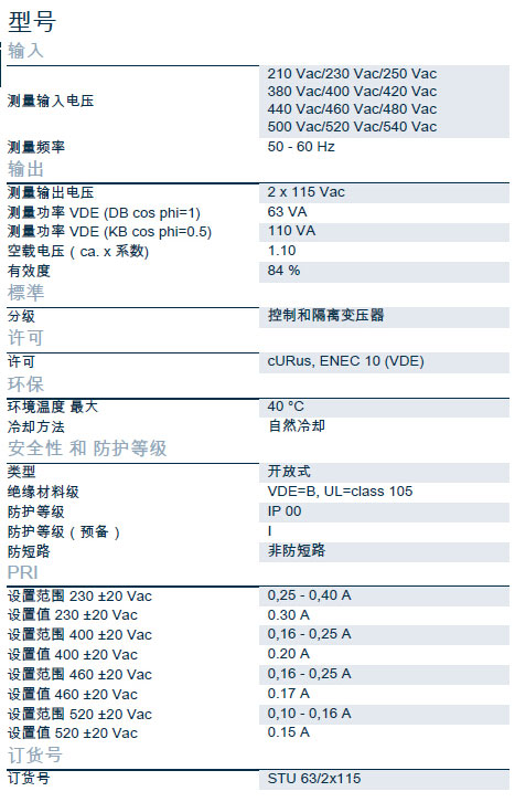 120777/STU 63/2x115/STU系列通用控制和保护及隔离变压器
