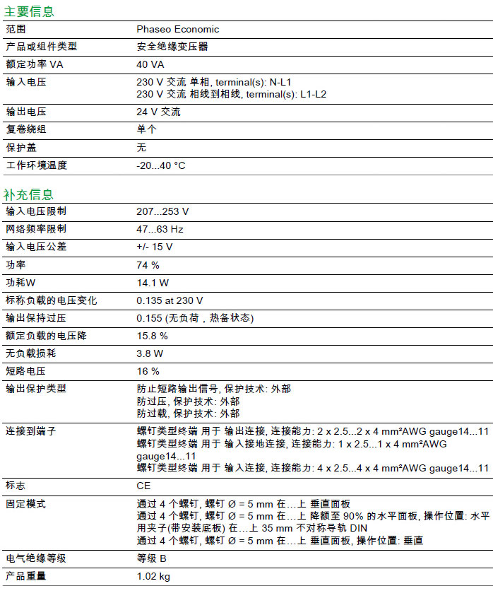 120839/ABT7ESM040B/ABT7ESM系列单个复卷绕组,安全绝缘电压变压器