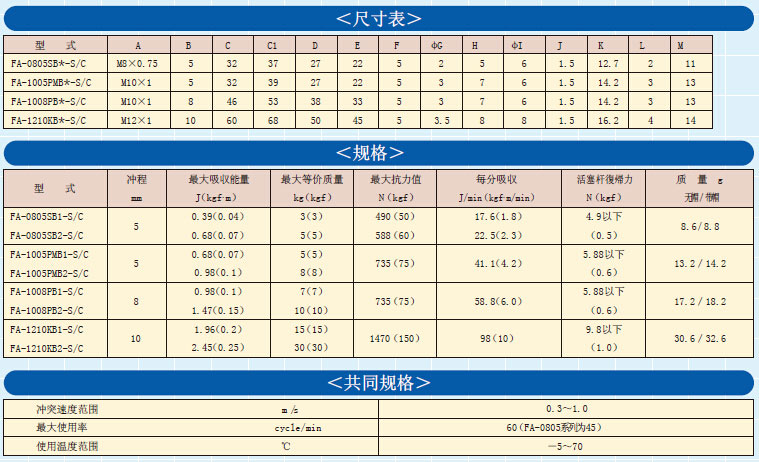 注:FA-0805系列本体扩文可提供M8x1.0,订货时请注明FA-0805SB -S-P1.0或者为FA-0805SB -C-P1.0,但是不提供对应的其他配件。