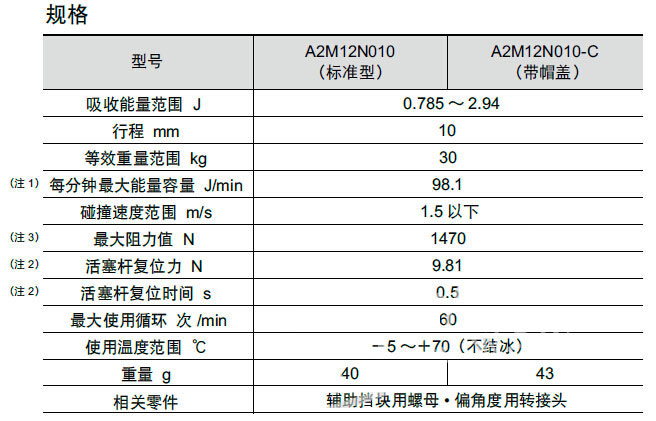 A2M12系列外形小、重量轻的模拟调节式螺纹型缓冲器(调节式/单节流孔/模拟调节式)