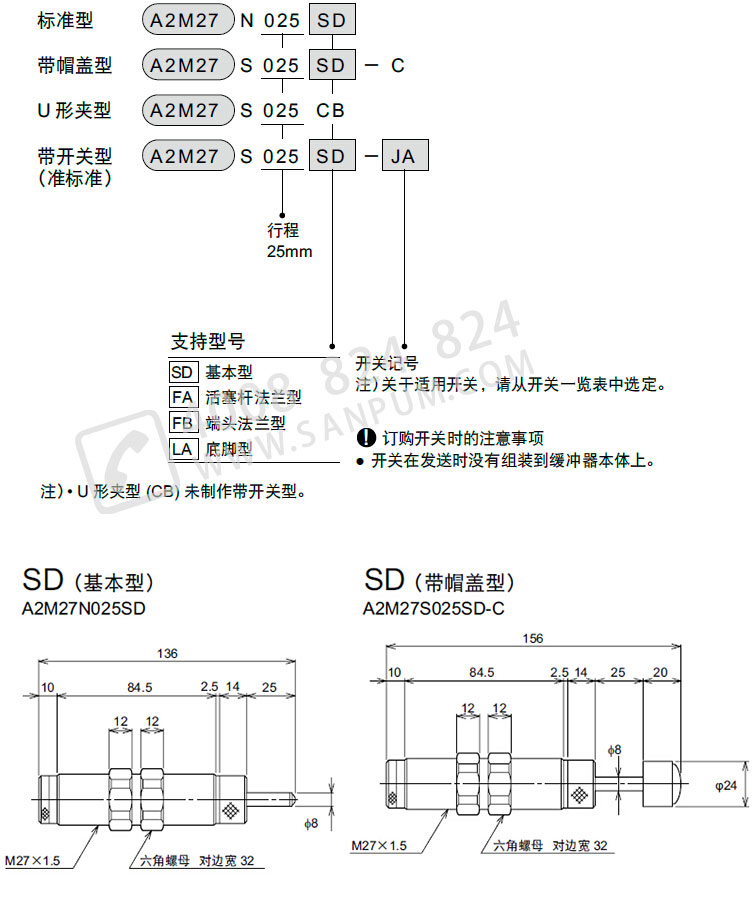 机型丰富,包括防止碰撞时噪音的带帽盖型, 以及在行程末端获取信号的带开关型等.