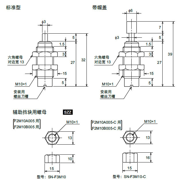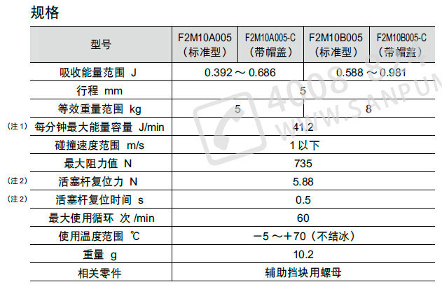 F2M10系列体积小、重量轻的螺纹式缓冲器(固定式/单节流孔)