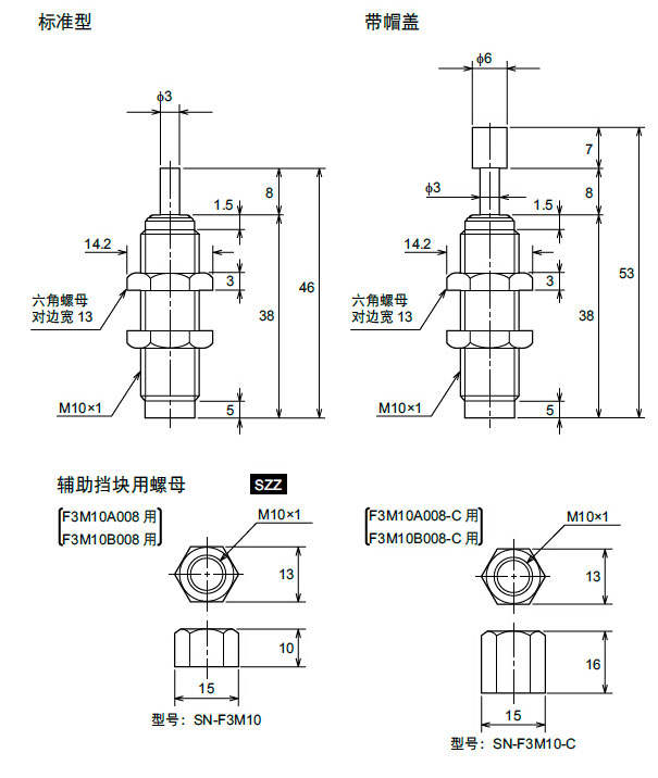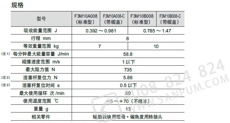 F3M10系列体积小、重量轻的螺纹式缓冲器(固定式/单节流孔)