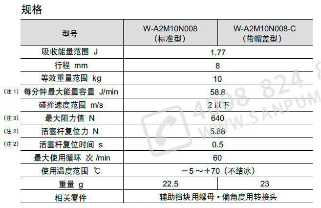 W-A2M10系列重量轻,紧凑小巧的模拟调节式两级动作螺纹型缓冲器(双级动作W型,变则多节流孔/模块调节式)