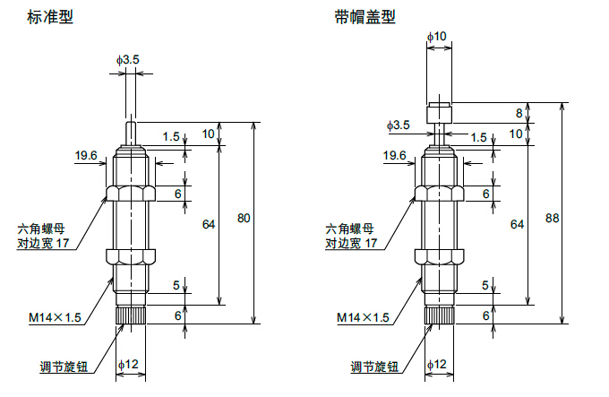 外径尺寸仅M14,外形小巧,使用时像安装螺栓一祥简单;