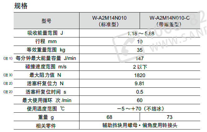 W-A2M14系列重量轻、紧凑小巧的模拟调节式两级动作螺纹型缓冲器(双级动作W型,变则多节流孔/模块调节式)