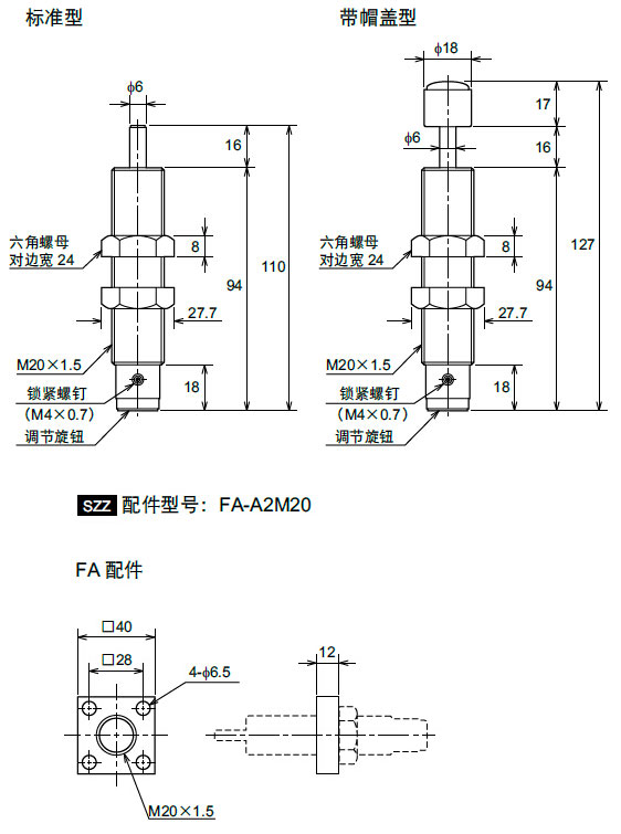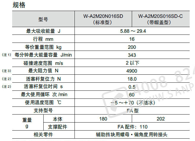 W-A2M20系列重量轻、紧凑小巧的模拟调节式两级动作螺纹型缓冲器(双级动作W型,变则多节流孔/模块调节式)变则多节流孔/模块调节式)