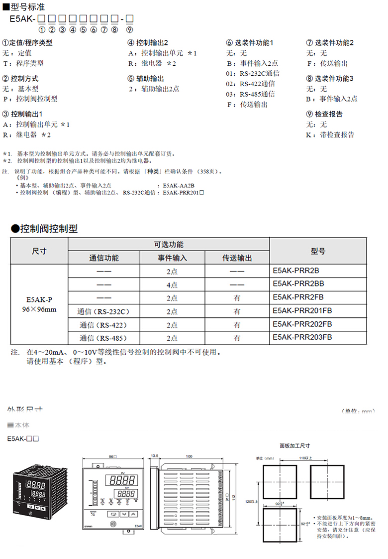 107060/E5AK-PRR203FB/E5AK-P系列 数字调节仪