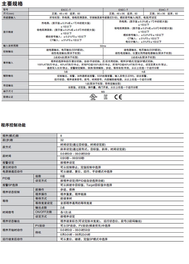 高速采样周期50ms:支持控制周期0.1s,0.2s:所有机型全量程多输入:配备无程序通信机型:最大事件输入4个点,辅助输出点数4个点