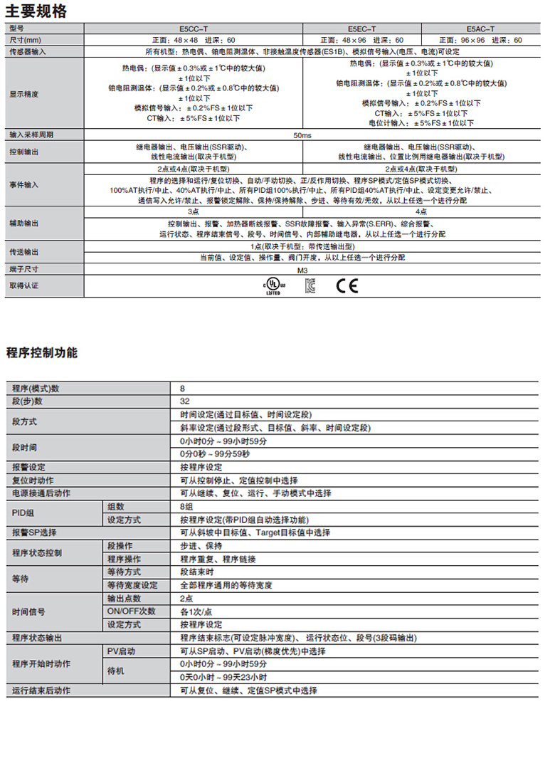高速采样周期50ms:支持控制周期0.1s,0.2s:所有机型全量程多输入:配备无程序通信机型:最大事件输入4个点,辅助输出点数4个点