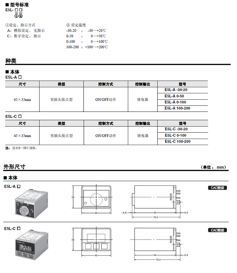 简易控制最适合设备内置用能够设置AC250V 10A的大容量开关,可以直接开关负载:附带传感器,可以立即使用:可使用接触保护型.无保护型.插座:新增数字型系列,设定方法变得简单准确