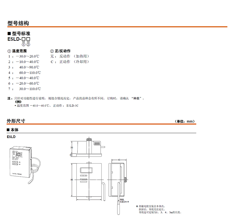 内置微电脑的高精度数字恒温器:借助微电脑可实现高精度的温度控制:与控制设备组合使用,可调整调节灵敏度:附带便于节能运行的设定值转换功能,以及便于运行停止的控制禁止功能