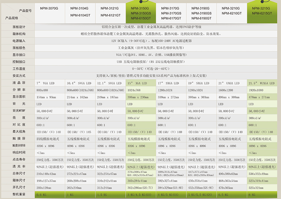 200039/NPM-3150GS/NPM系列带散热片的电阻式触摸屏