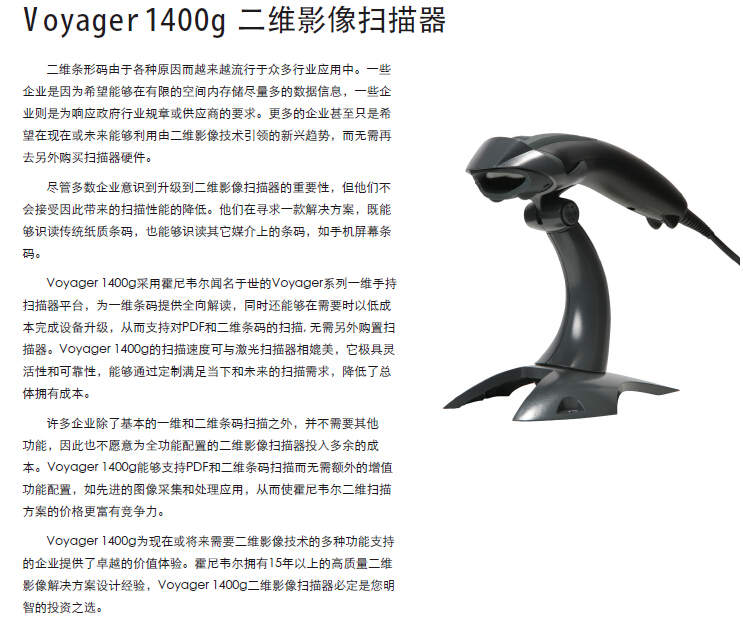 Voyager1400g的扫描速度可与激光扫描器相媲美,它极具灵活性和可靠性,能够通过定制满足当下和未来的扫描需求,降低了总体拥有成本.
