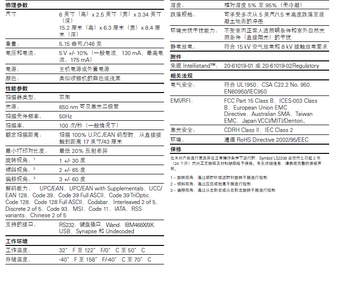摩托罗拉 Symbol LS2208 手持式扫描器价格合理,扫描性能卓著.无论是在零售销售点 (POS) 和仓库,还是在患者病床旁和学校图书借阅处,均能提供快速、可靠的扫描,该设备外观小巧轻便、结实耐用,能够在大幅提高您的工作效率的同时,显著降低总拥有成本
