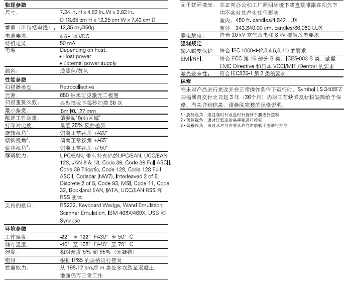 Symbol LS3408FZ扫描器可以快速精准的识别工业环境中常见的受损、污浊或印制效果差的一维条码,Symbol LS3408FZ不仅具有前所未有的坚固耐用性而且符合人体工程学设计,并提供多种操作功能,可满足高强度工业级扫描应用的需要.