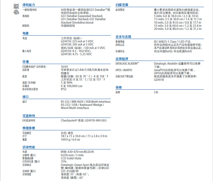优秀的读取性能,可以在从接触到1m的范围内读码,从而提高用户的生产效率和人体工程学性能.