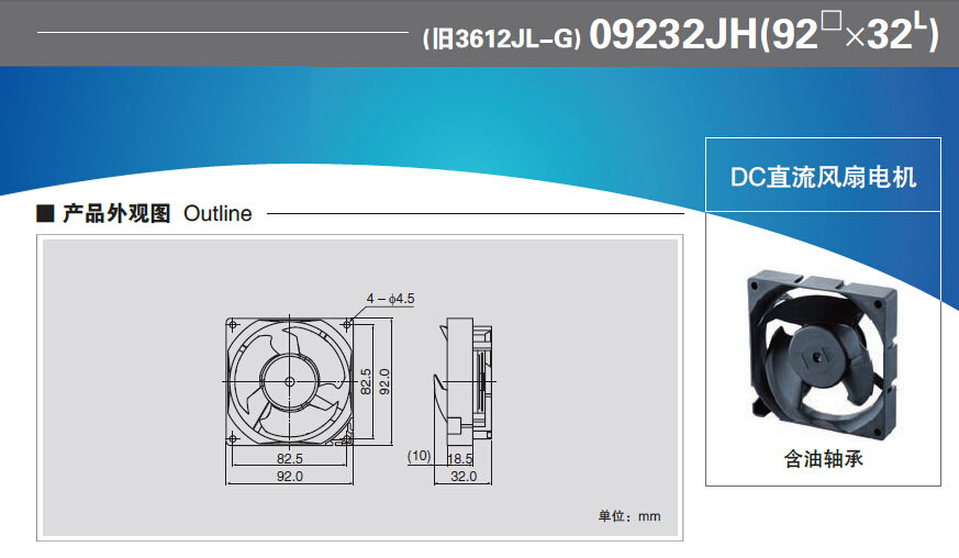 205473/09232JH-12M-BA-F0/09232JH系列 含油轴承型直流风扇电机