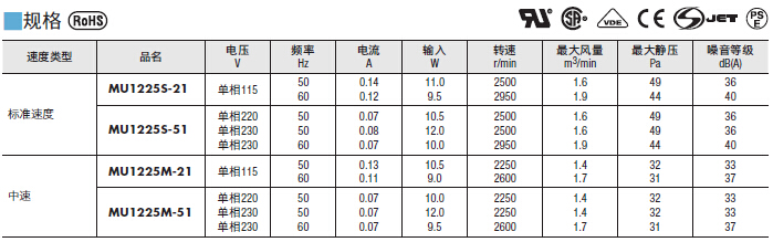 MU1225系列 铝铸外壳滚珠轴承风扇