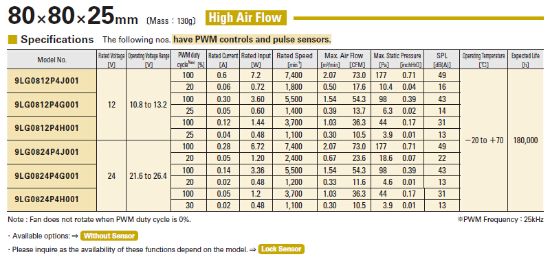 205611/109P0812H701/San Ace 80系列 直流冷却散热风扇