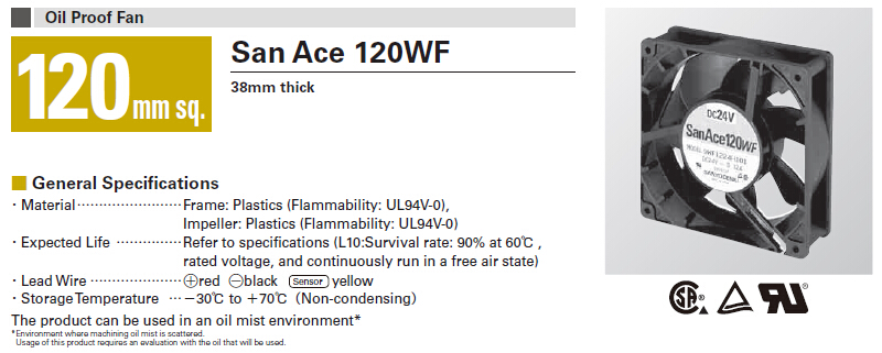 San Ace120WF系列 防油型直流散热风扇