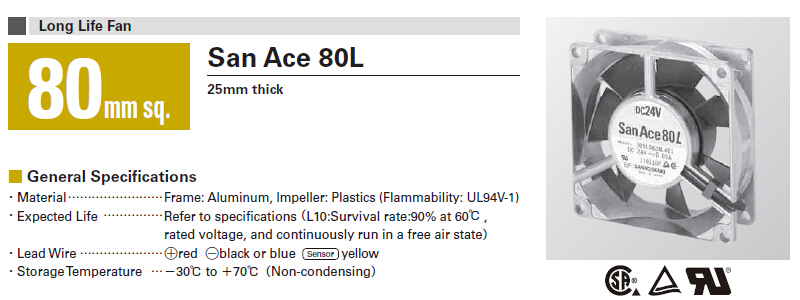 205915/109L0824F401/San Ace 80L系列 长寿命高品质直流散热风扇