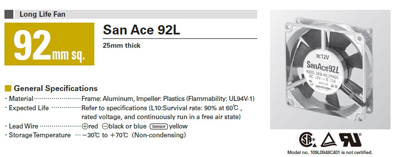 205936/109L0948C401/San Ace 92L系列 长寿命低噪音直流散热风扇