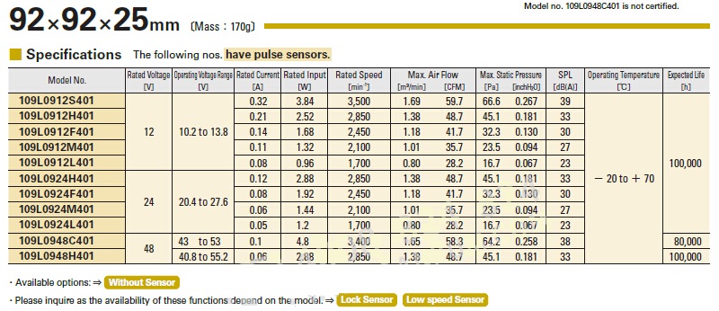 205927/109L0912S401/San Ace 92L系列 长寿命低噪音直流散热风扇