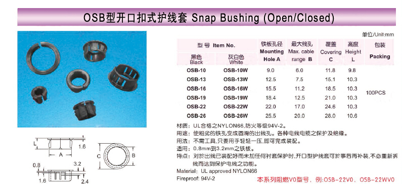 使粗劣的铁孔变成圆滑的线孔.各种电线电缆作为保护和绝缘的用途.对于出线已装配好而未加任何衬套保护时,开口型护线套可於事后再补装(不必重新拆线)而达到保护线的功能.