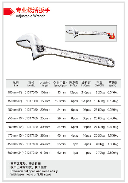 高精度螺母,开合自如.扳口上镭射刻度,便于操作.