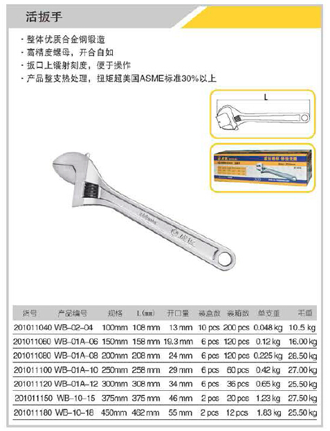 整体优质合金钢锻造,高精度螺母,开合自如,扳口上镭射刻度,便于操作.产品整支热处理,扭矩超美国ASME标准30%以上.
